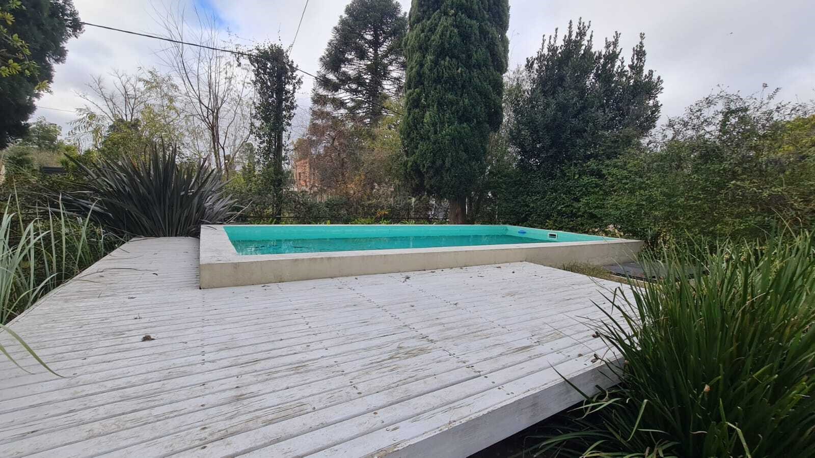 Casa quinta en venta en Hostería Norte, Luján, sobre un terreno de 1.000 m2, con frondosa arboleda. Una hermosa pileta con deck de madera para disfrutar. La casa cuenta con una amplia concina comedor integrada, un living, dos dormitorios y un baño completo, Es apto crédito! No dudes en escribirnos y coordinamos unas visita.